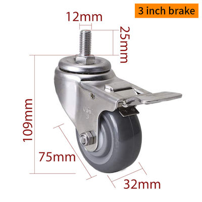 EDL 3Inch Stainless Steel Caster Loading 150Kg with TPU Wheel Threaded Swivel/Brake S543S-75