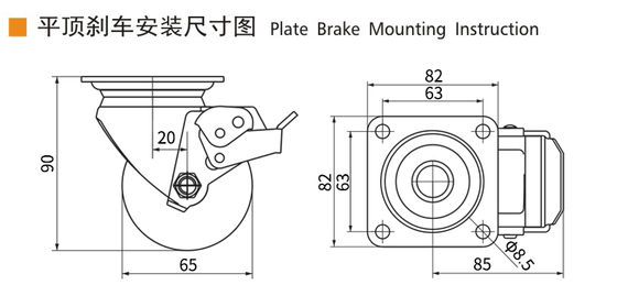 | Wheel Item No. | Size | Wheel Diameter | Wheel Width | Bracket Width | Load Capacity | Core | Tread | Bearing | Applicable Temperature | Hardness |