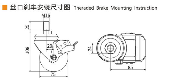 | M433-16 | 3" | 75mm | 40mm | 46mm | 500Kg | PA | Double ball bearing 6001 | -20℃~100℃ | 67D |